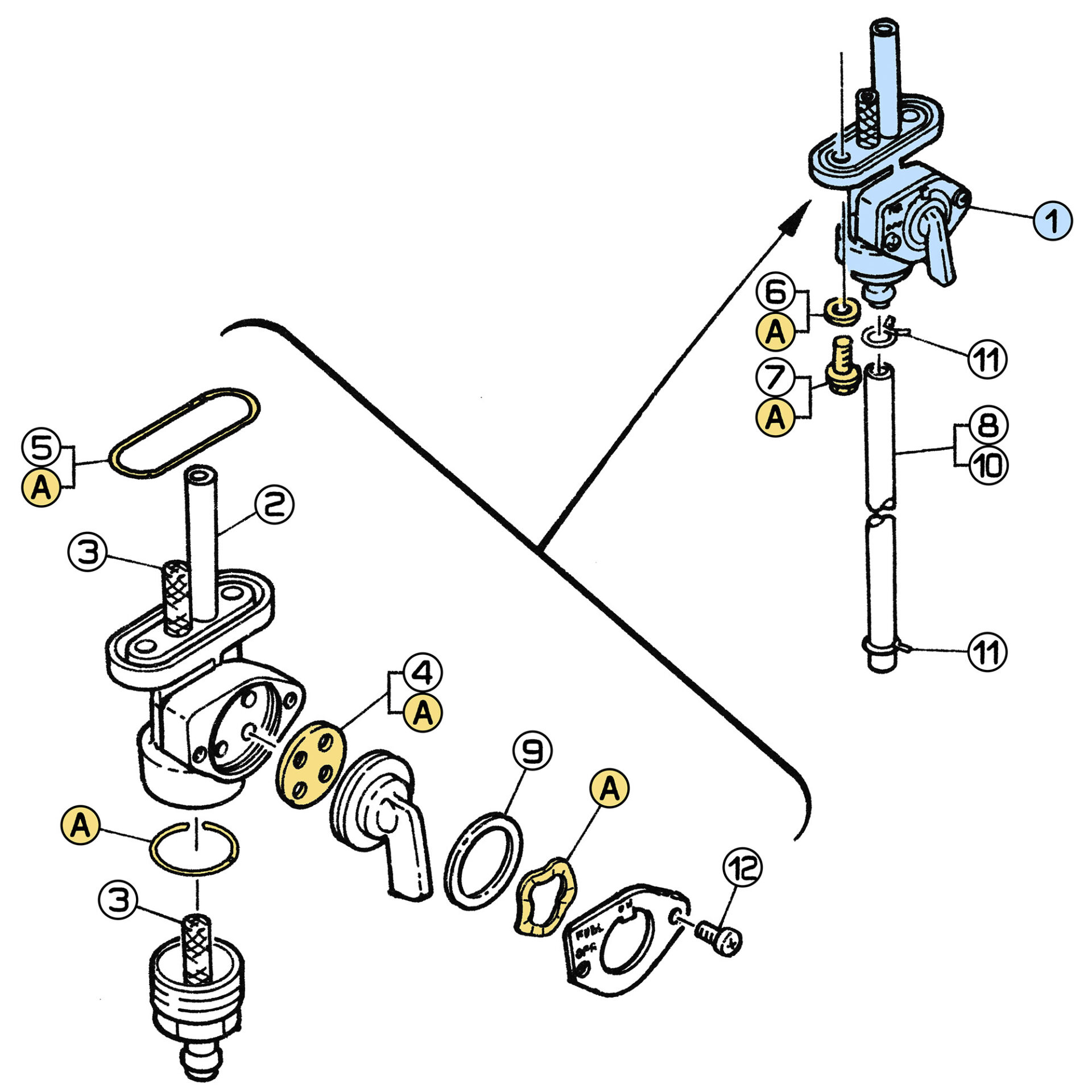 Hier findest du sämtliche Ersatzteile, die wir für die Restauration deines Benzinhahns anbieten: