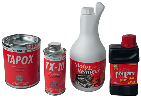 Tom zeigt uns, wie das aussieht und was dann zu tun ist. Er erklärt das Benzinhahn-Reparatur-Set Art. Nr. 50028 und seine Bestandteile.