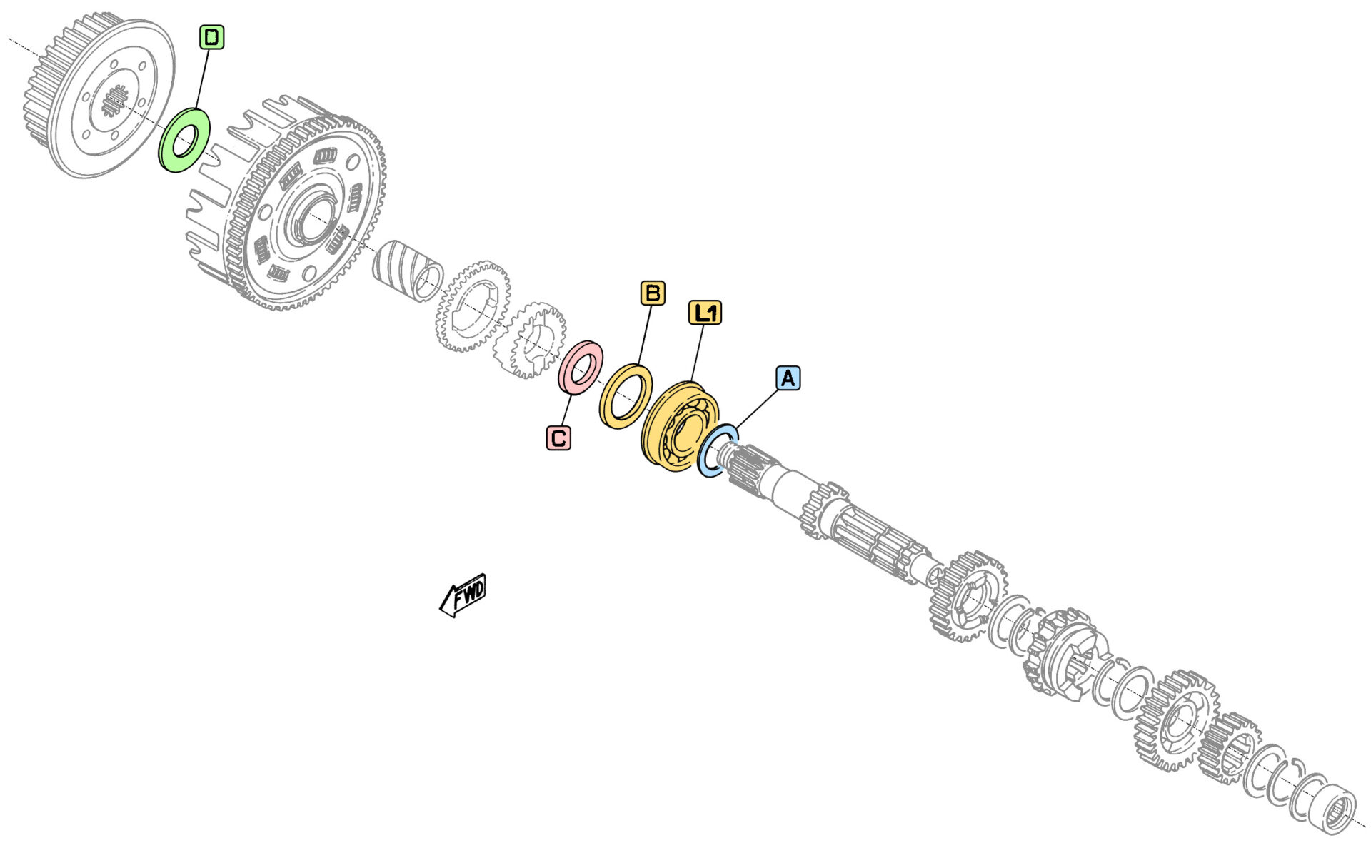 A: Passscheibe 0,5mm (Getriebehauptwelle), sogenannte ‘Verlustscheibe’
